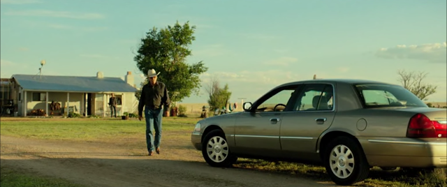 con un plano de Marcus alejándose con el coche por la polvorienta carretera